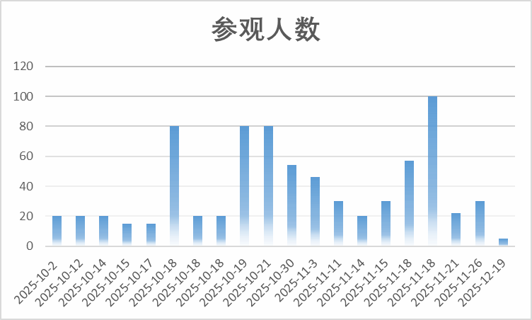 2025年第四季度,校史馆累计接待访客20次,其中校内团体9个,校友团体6个,校外团体5个,共计764人次。10月、11月接待工作较为集中,接待量与往年同期保持平稳。学生党团活动、校友返校活动及外部交流团组构成主要参观客源。本季度重点围绕各历史时期、东山新校区、新增多媒体等内容展开讲解,通过深化讲解内容,进一步发挥了校史育人的文化阵地作用。